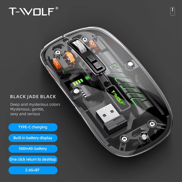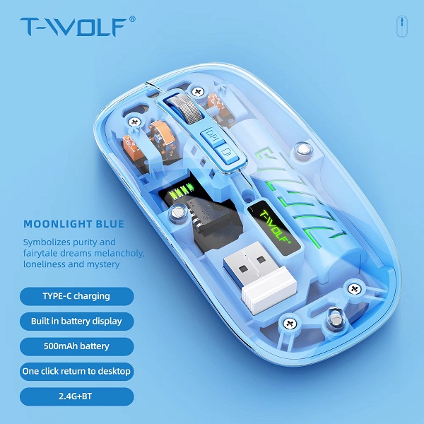 T-Wolf X11 Transparent 2.4GHz/BT5.0 Wireless 3-in-1 Mouse