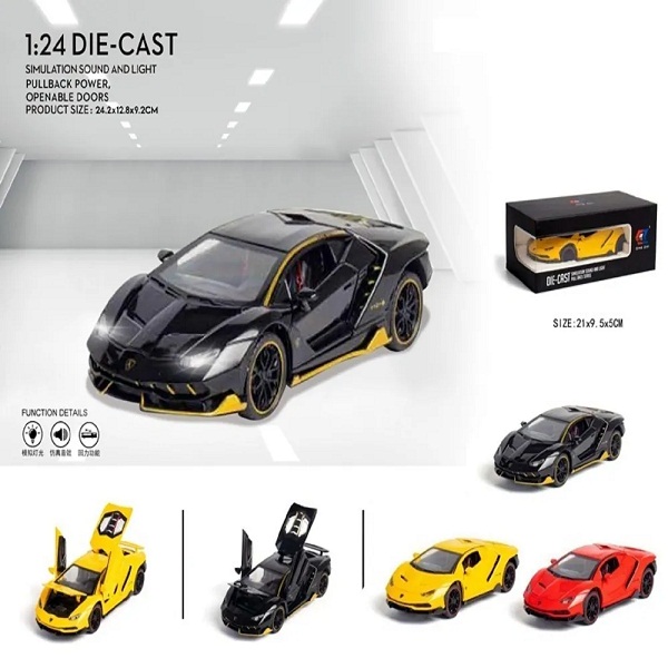 Kids Toy Lamborghini 1:24 Diecast Metal Pullback Racing Car with Openable Doors & Light (0725)