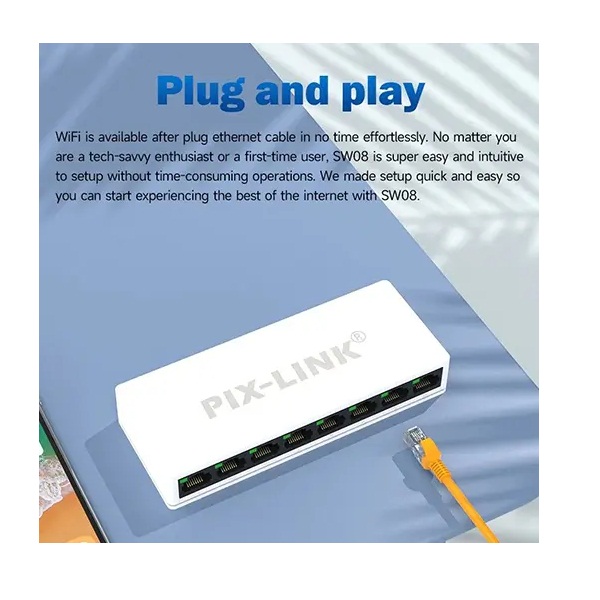 The PIX-LINK SW08 is an ideal solution for home and office use. Providing a cost effective and easy to install networking solution. Upgrade your network infrastructure with this reliable 8-port switch for enhanced speed, stability, and overall performance.
