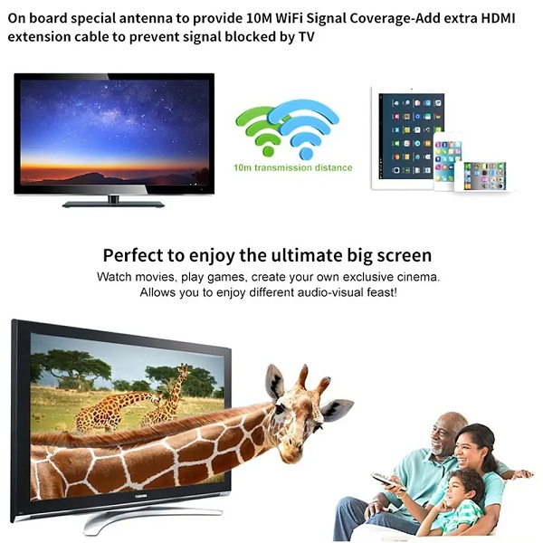 AnyCast M9 Plus WiFi Display Receiver is compatible with smartphones and tablets such as iPhone, Samsung, Sony, iPad with Android 4.2 and iOS 7 above, eg iPhone8,8 Plus, 7/7 Plus, 6/6 Plus, 6s/6s Plus, 5/5C/5s , 4S/4, SE, iPad 2/3/4/iPad mini/Air/Pro, Samsung/Google/Nokia/HTC/LG, etc. With this wifi display receiver, you can easily share high-resolution media files with friends and family. (PowerPoint, Excel, Word, PDF and images to HD TV/monitor /beamer).