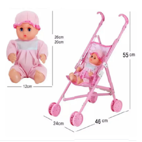 - Dolls Buggy Stroller Pushchair Pram Foldable Girls Toy Doll Pram Baby Doll