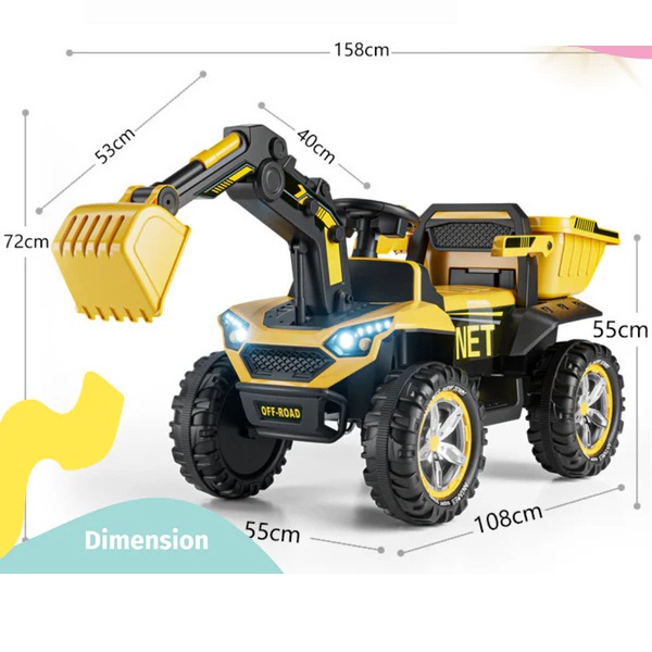 Exciting Play Experience: With its large size and 4-wheel drive system, this electric excavator beach car provides an exciting play experience for kids, allowing them to dig and drive like a real excavator, promoting creativity and imagination.