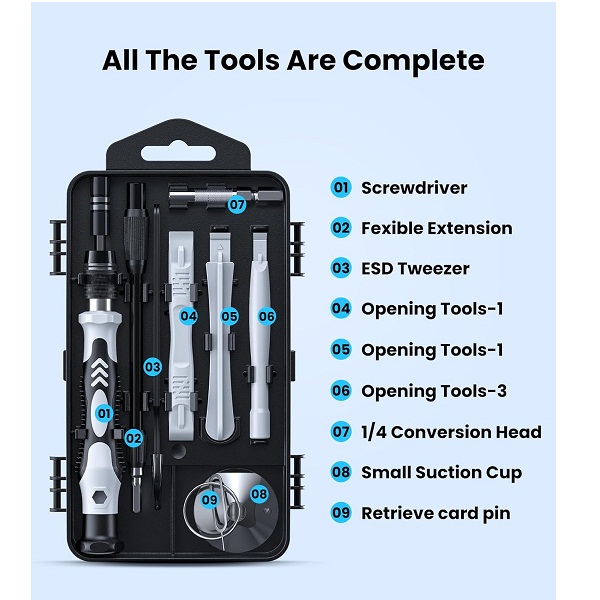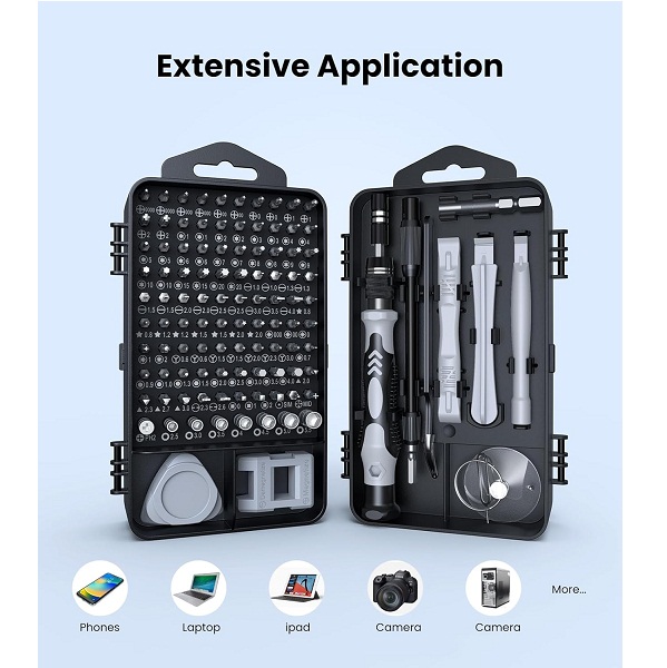 115 in 1 for a wide range of applications (computer, smartphone, laptops, Xbox, tablets, camera, toy) 3.Anti-Silp handle in silicone quality and ergonomic design.