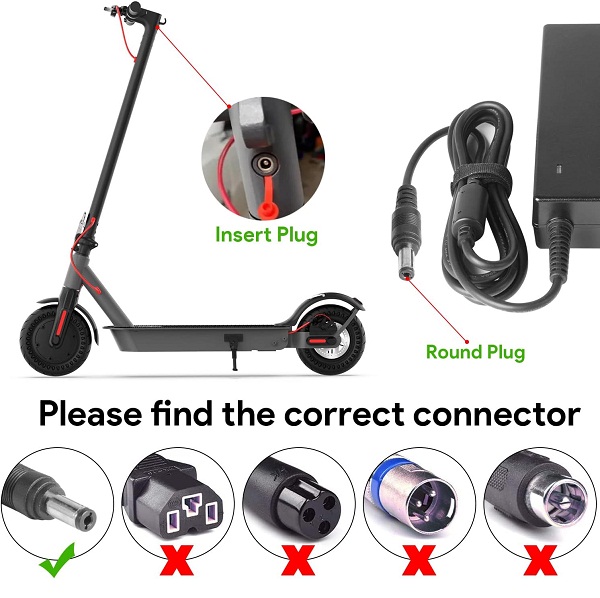 GOTRAX G2 GT-G2-BLA 36V 4.0Ah 4.0A 4A Lithium-Ion Battery Portable Folding Frame 200 Watts Commuting Electric Scooter; Gotrax GXL 250 Watts 36 Volts 36V 5.2Ah Lithium-Ion Battery E-Scooter Folding Electric Scooter; Gotrax GXL V2 GT-GXV2-BLA GTGXV2BLA 36V 5.2Ah Lithium-Ion Battery E-Scooter Handbrake Edition Commuting Folding Electric Scooter Power Supply (⚠️with Barrel Round Plug Tip. NOT 3-Prong ❌ Connector.)