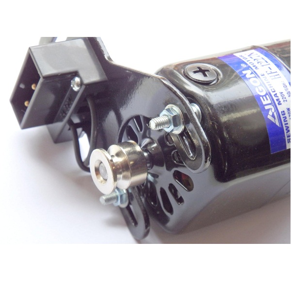Electric drive with pedal for sewing machines. The direction of rotation is shown in the picture by the red arrow.