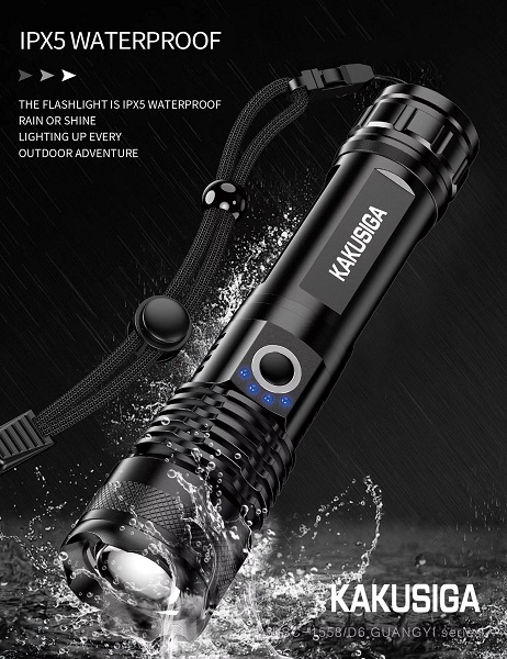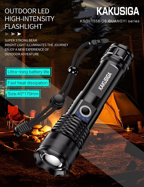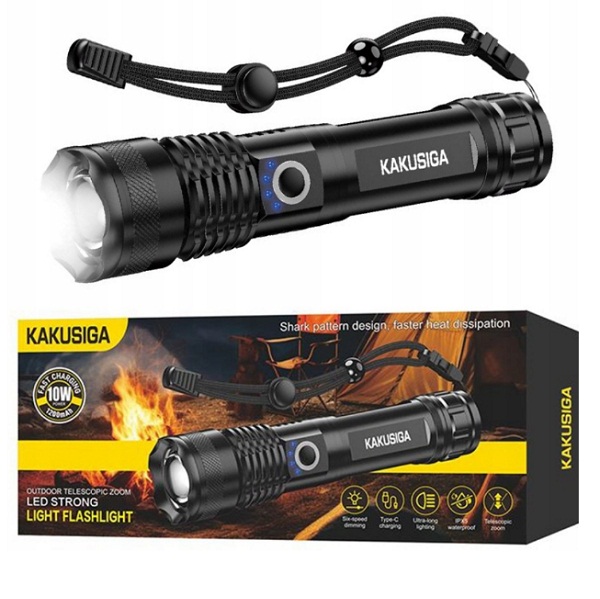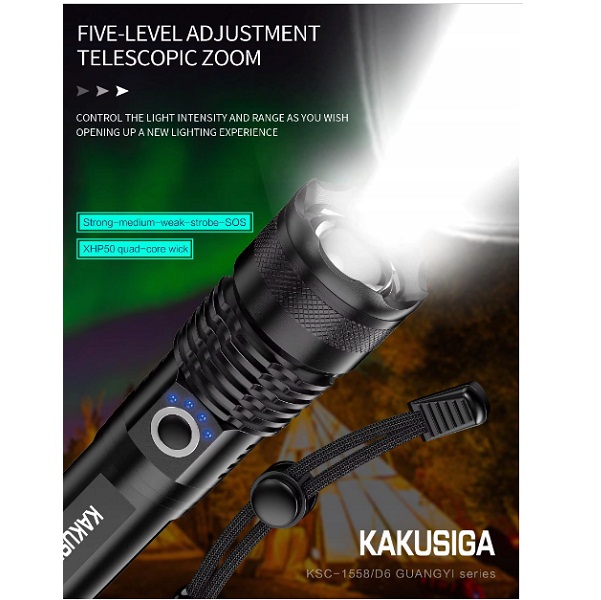 KAKUSIGA KSC-1558 LED XHP50 Flashlight Torch Light 500m USB-C 5 Modes IPX5