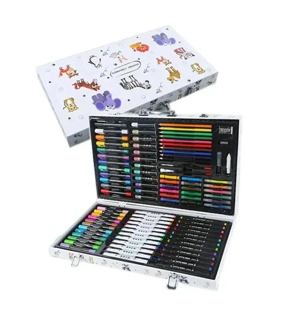 A large number of parts allows for practical use and will allow the realization of various creative ideas. 94 parts – with a large selection of crayons, markers, oil pastels, pencils, brushes, sharpeners and erasers, you will easily create the most imaginative, creative and original works. The entire set is stored in a case, so carrying the entire contents is simple and convenient; in addition, it has a handle for convenient carrying. When you are done with the original accessories, you can successfully fill the case with new accessories of your own.