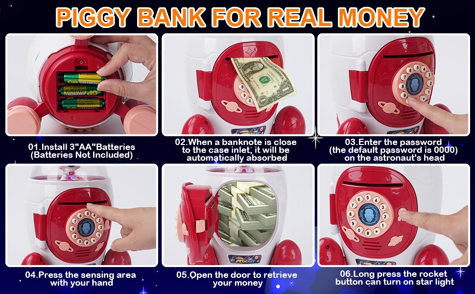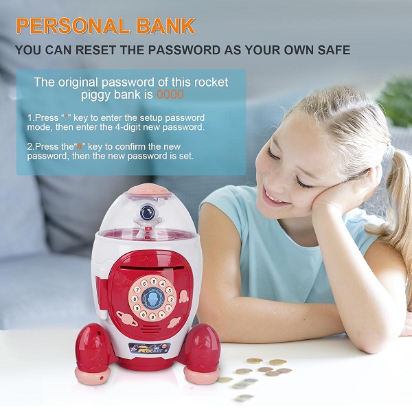 The original password of this rocket piggy bank is 0000