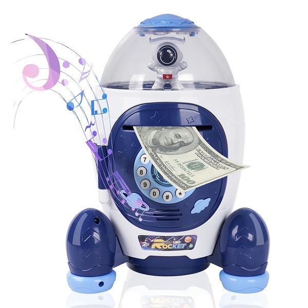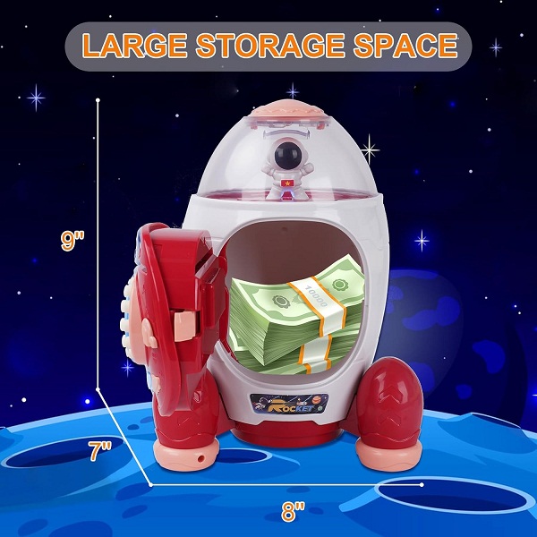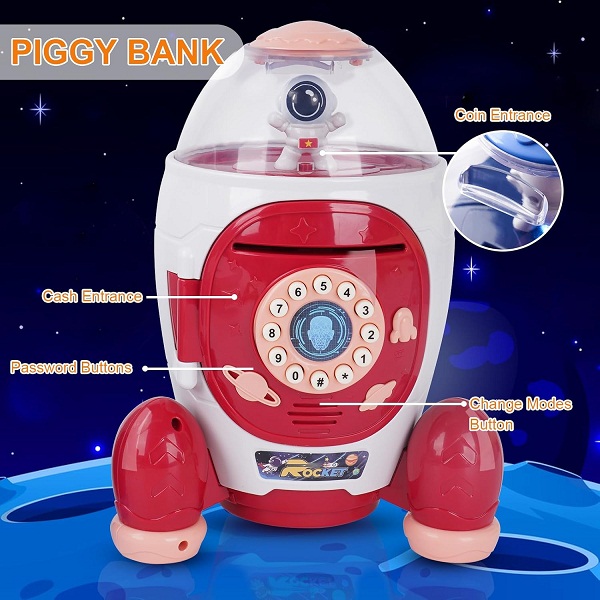 Kids Money Saving Box with Password Rocket Piggy Bank (0525)
