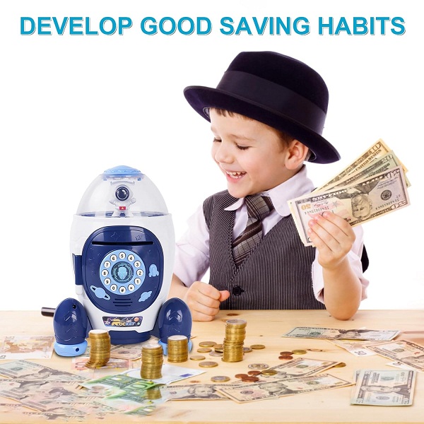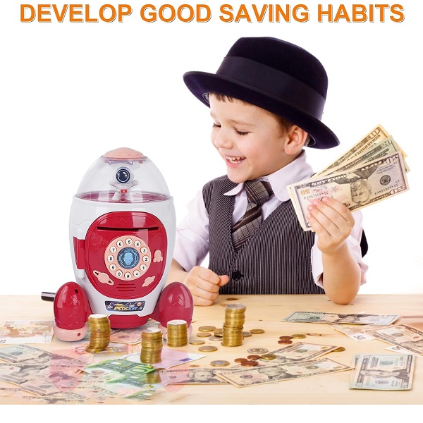 Secure Password Protection: Keep your child’s savings safe and teach them the value of security with the built-in secure password protection feature. Rest easy knowing that their hard-earned money is protected from prying hands. By introducing them to the importance of safeguarding their wealth, you’re fostering a sense of responsibility that will be invaluable throughout their lives.