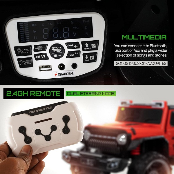 Remote Control: Equipped with a remote control, parents can ensure their child’s safety by guiding the jeep’s movements and speed.