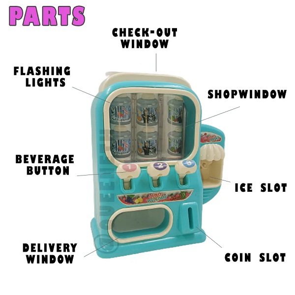 Drink Toys: Includes toy drink cans or bottles that can be “vended” from the machine, giving kids the chance to make pretend purchases.