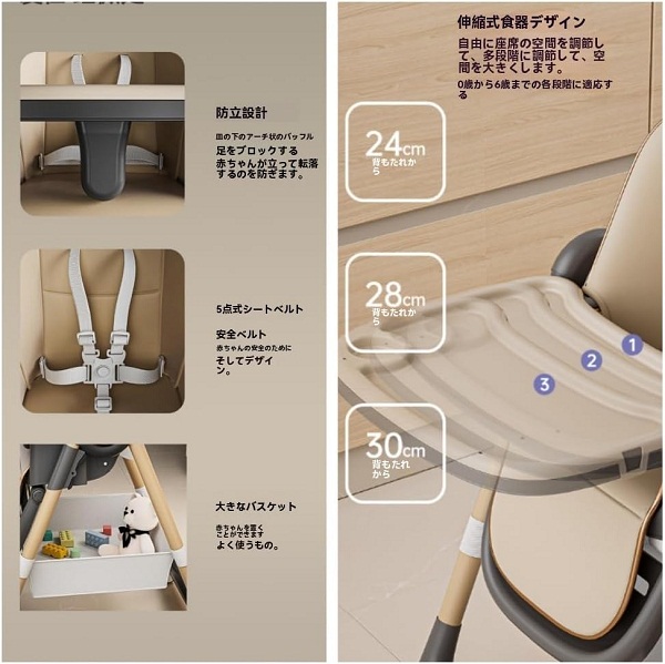 Multi-functional High Chair: A chair that grows with your child. This multi-functional baby chair combines eating, play, and growth