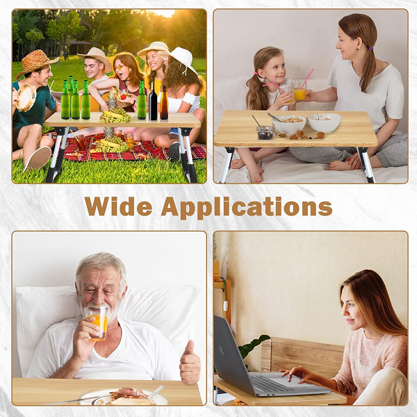 Easy to Apply: laptop tray is easy to daily apply; The retractable legs fold under the table, making it very lightweight and easy to carry; No assembly required, just simply pull out the folding legs and set the table, there is plenty of room under the table for your feet to stretch