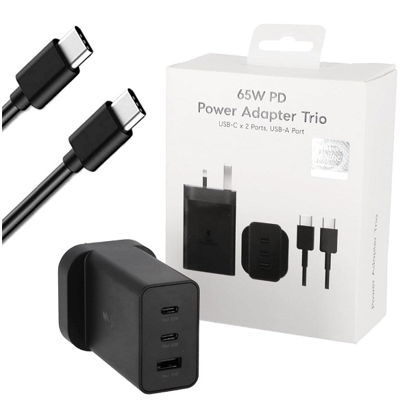 Samsung 65W PD Power Adapter Trio USB-C X 2 Ports USB-A Port and Type-C To C Cable