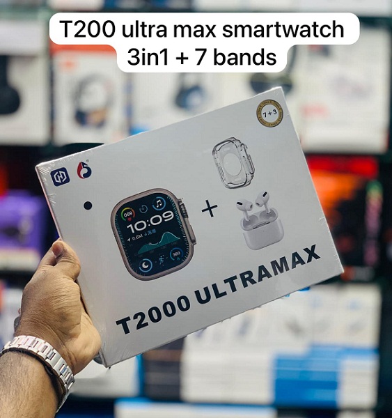 T2000 Ultra Max 3 in 1 Smart Watch Bundle with AirPods + Hard Shell Watch Protector, Fitness & Smart Features