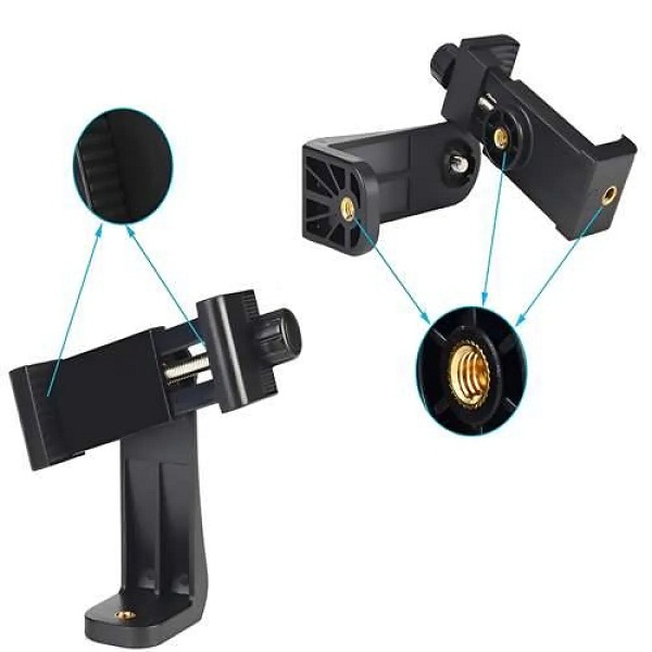 【Easy Tripod Phone Mount】The cell phone tripod mount features 3x 1/4″ standard female screws, which is perfect to mount it on any tripod, monopod or selfie stick with a 1/4″ standard male screw.