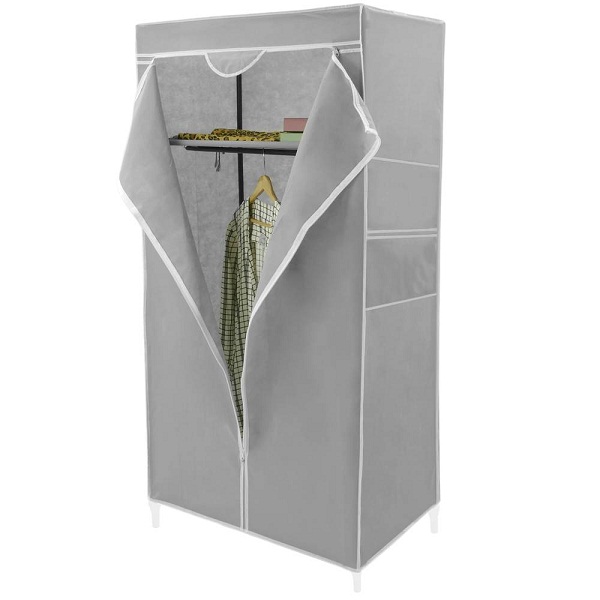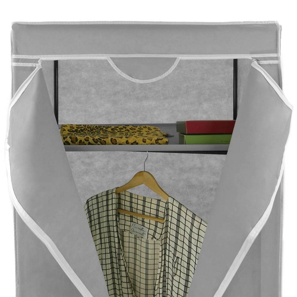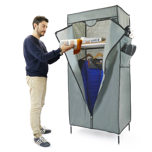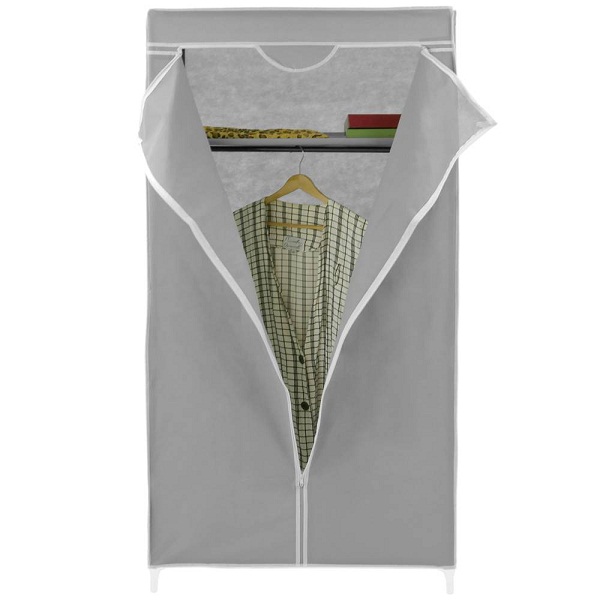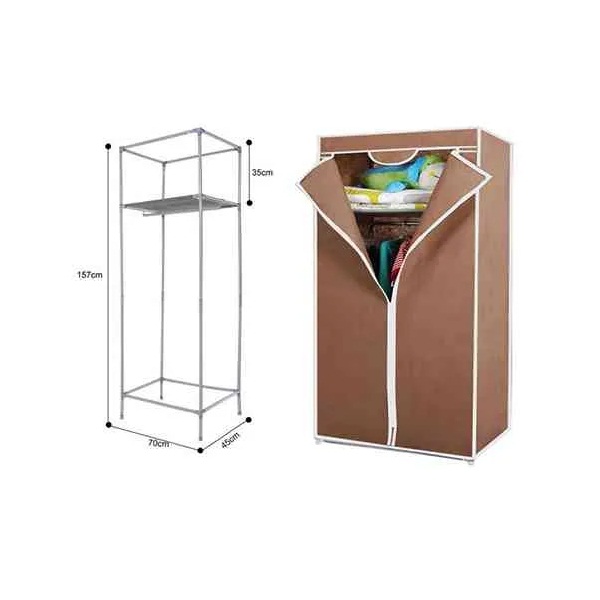 Low cost wardrobe closet, based on metal tube structure and high resistance fabric cover.