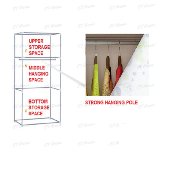 - T-shape Large Capacity Zipped Wardrobe with Spacious Storage